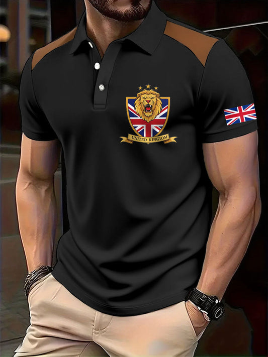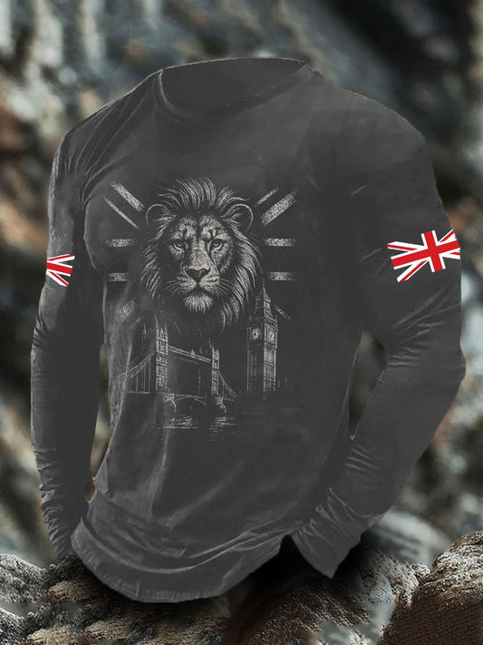 Men's UK Flag Lion Patriot Printed Casual Tops