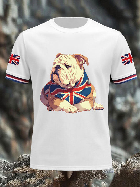 Men's Vintage England Flag Dog Printed Hoodie