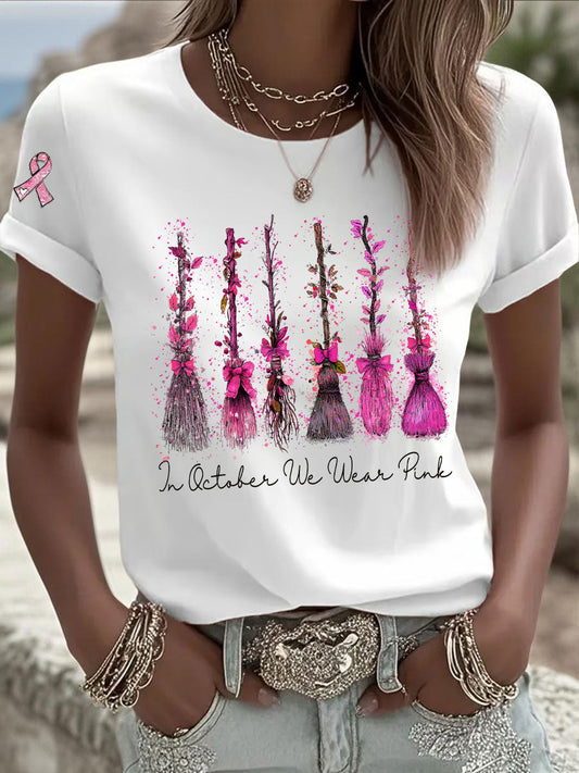 Women's Pink Ribbon and Dog Print Casual Top