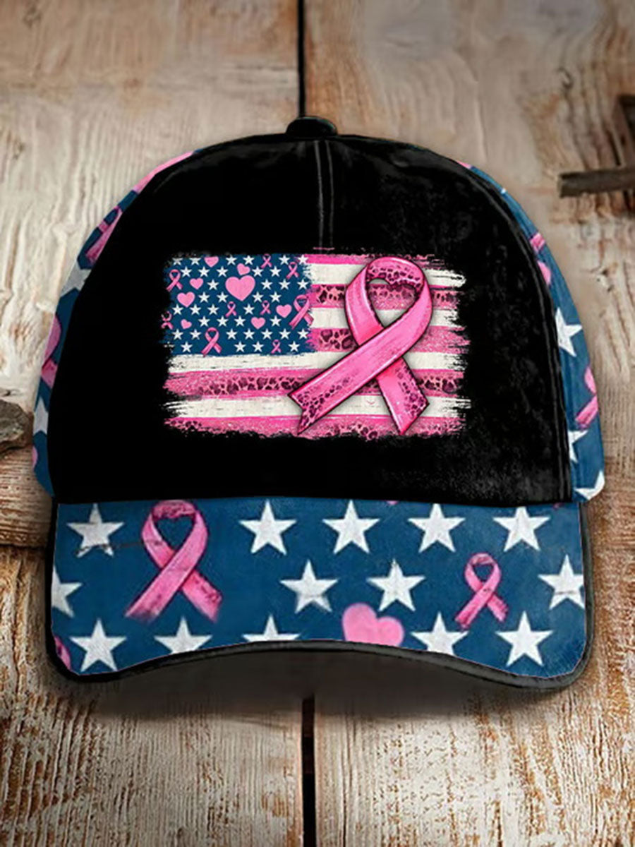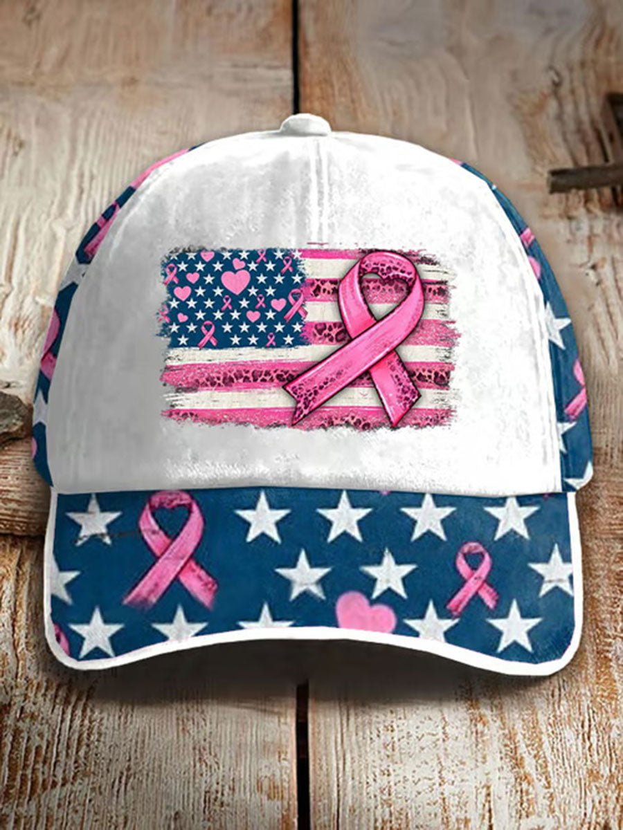 Breast Cancer Awareness Pink Ribbon Print Casual Unisex Hat