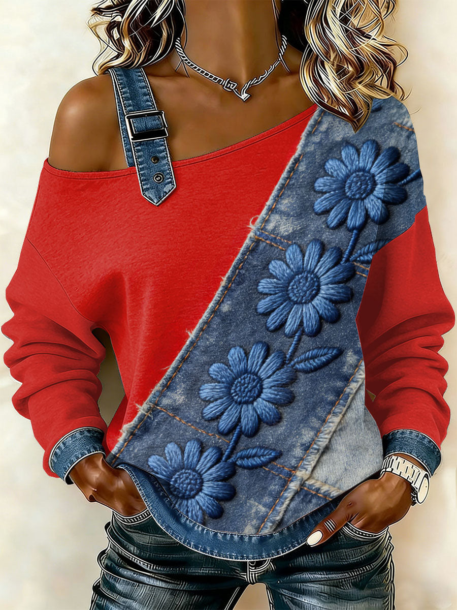 Damska bluza z motywem patchworku w kwiatowy wzór w stylu retro