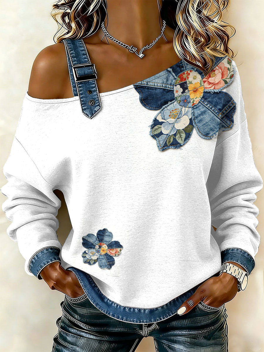 Damska bluza z motywem patchworku w kwiatowy wzór w stylu retro
