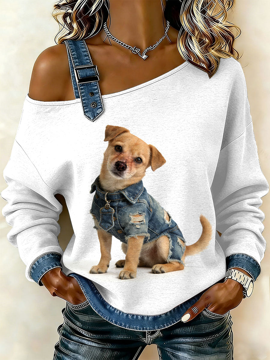Damska bluza z motywem patchworku w stylu vintage dla psa