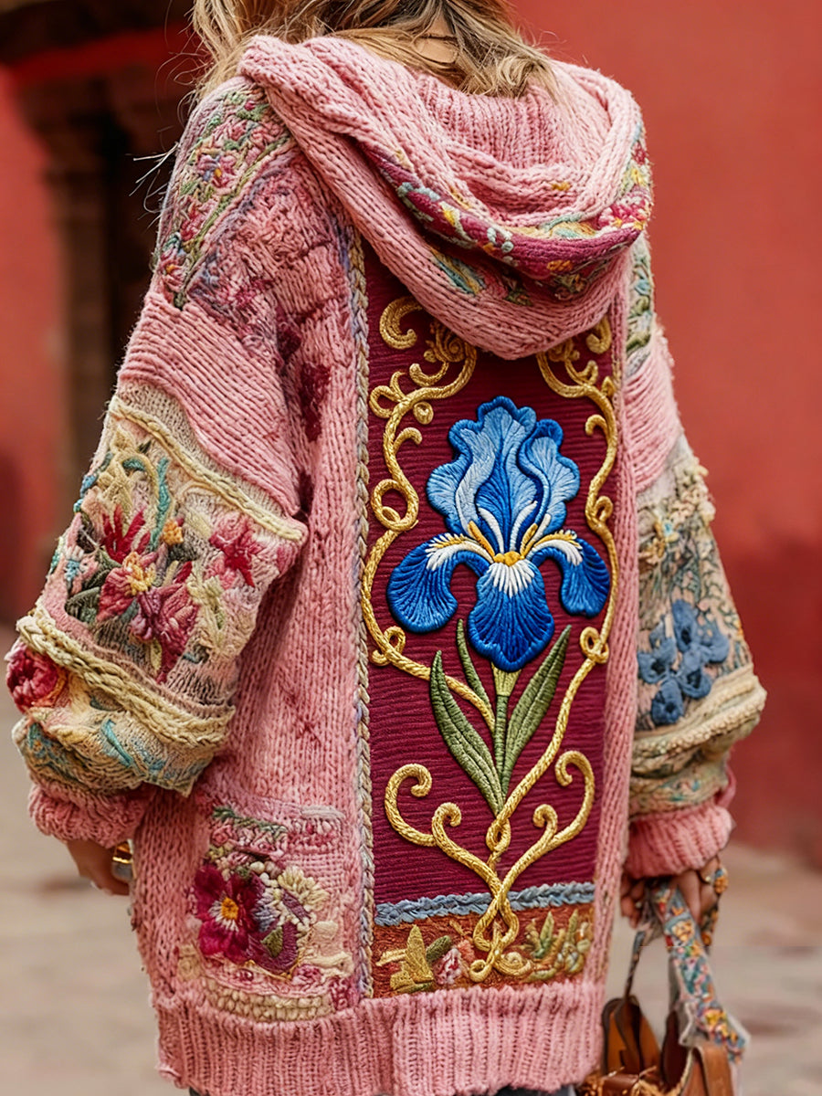 Damski styl vintage świadomość raka piersi z motywem kwiatowy wzór na guziki wygodny sweter z kapturem