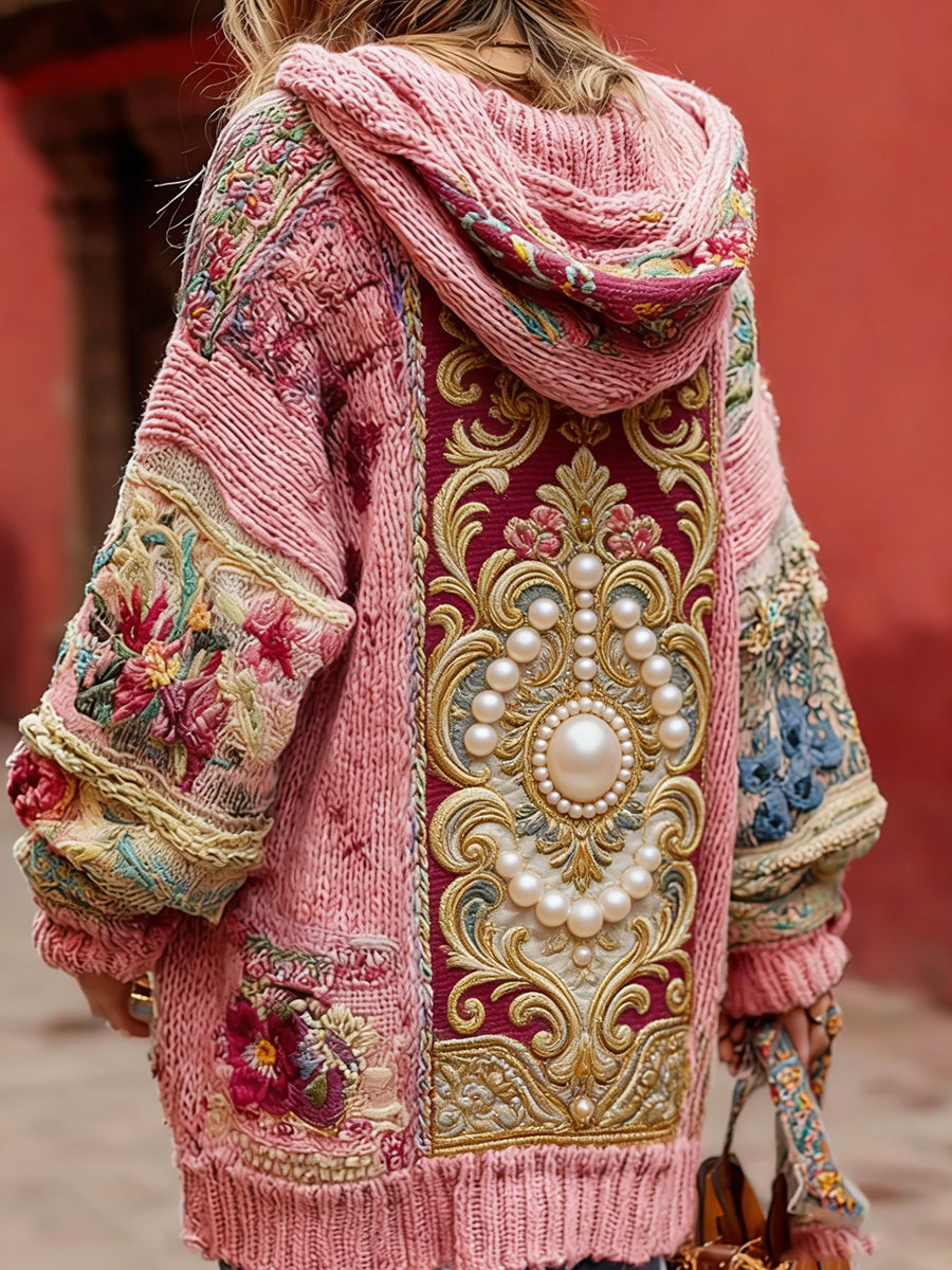 Damski styl vintage świadomość raka piersi z motywem kwiatowy wzór na guziki wygodny sweter z kapturem