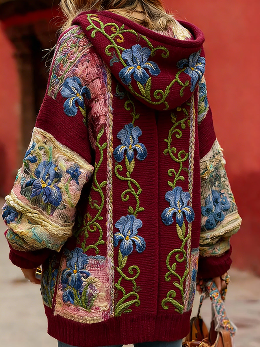Damski styl vintage świadomość raka piersi z motywem kwiatowy wzór na guziki wygodny sweter z kapturem