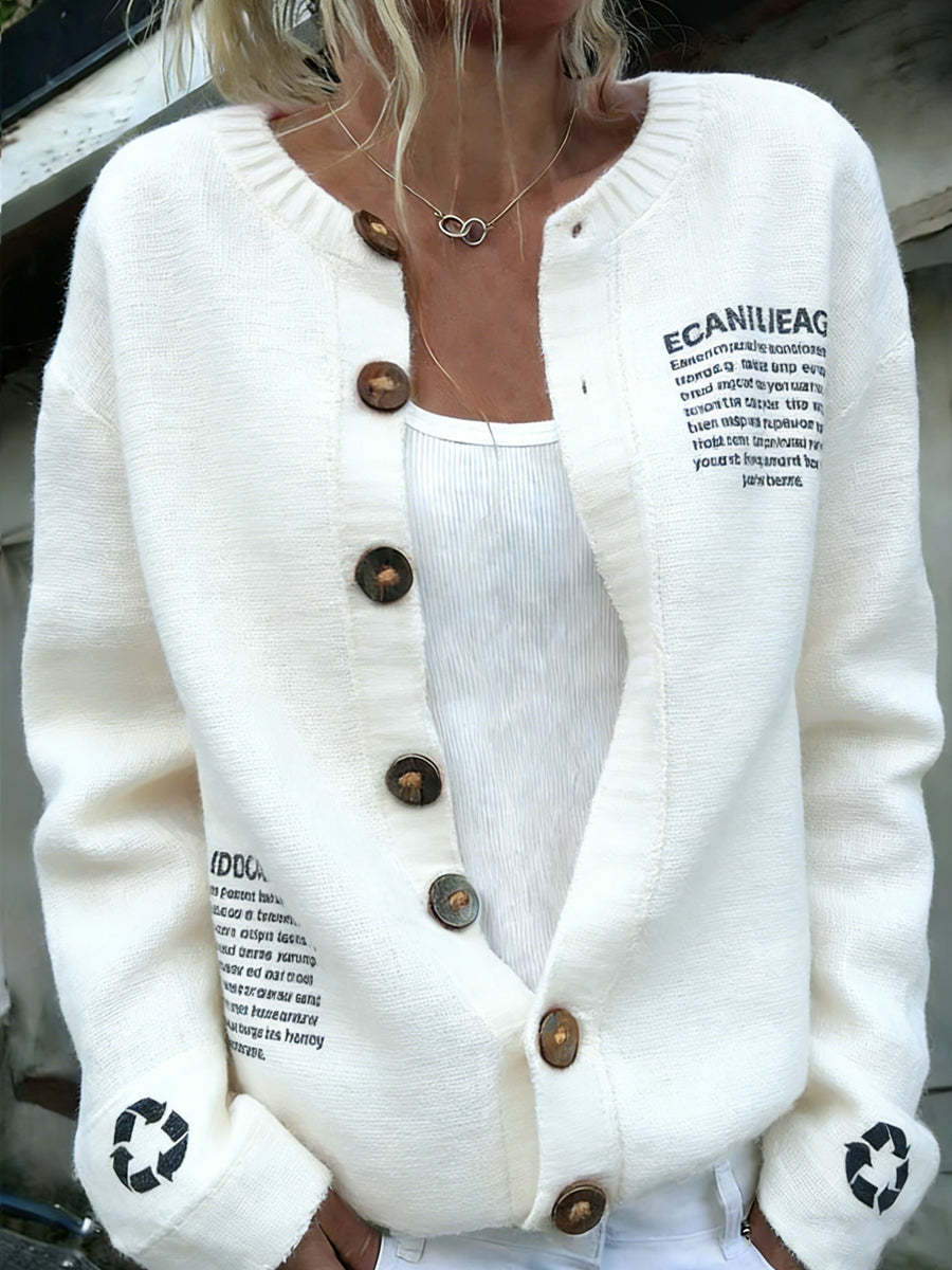 Damski vintage polski ekologiczny nadruk wygodny kardigan