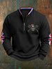 Men's UK Flag Skull Veteran Print Casual Sweatshirt
