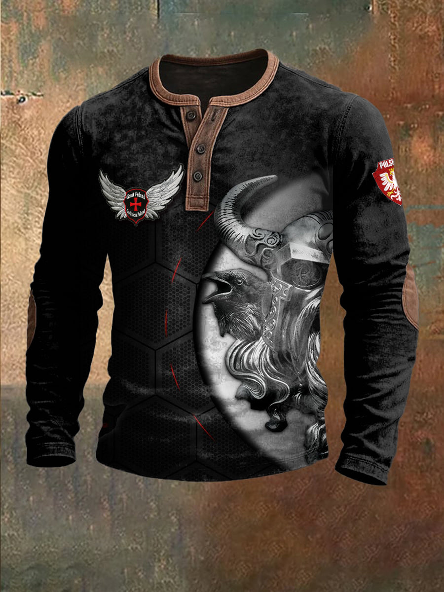 Męska polska bluza z nadrukiem rycerskim czarna patchworkowa