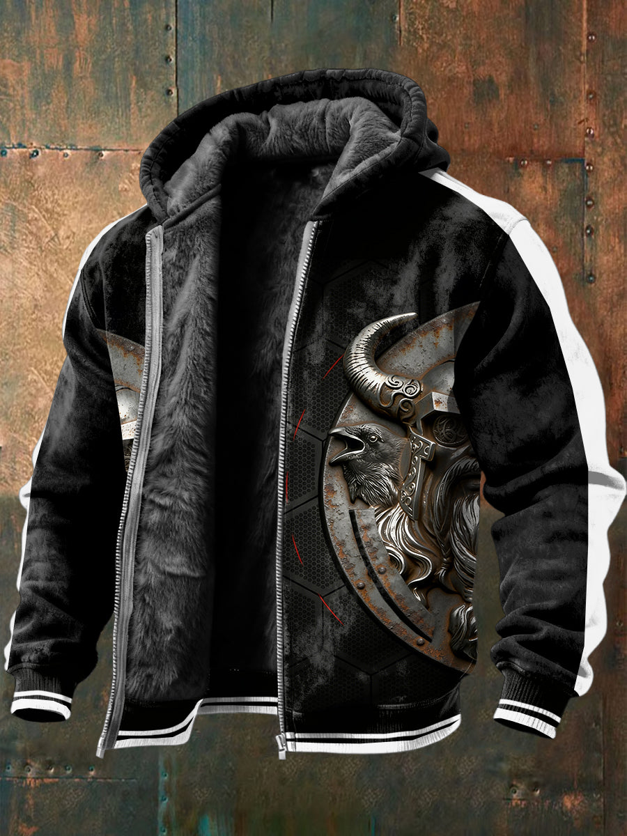 Męska polska kurtka z nadrukiem rycerskim Czarna polarowa kurtka