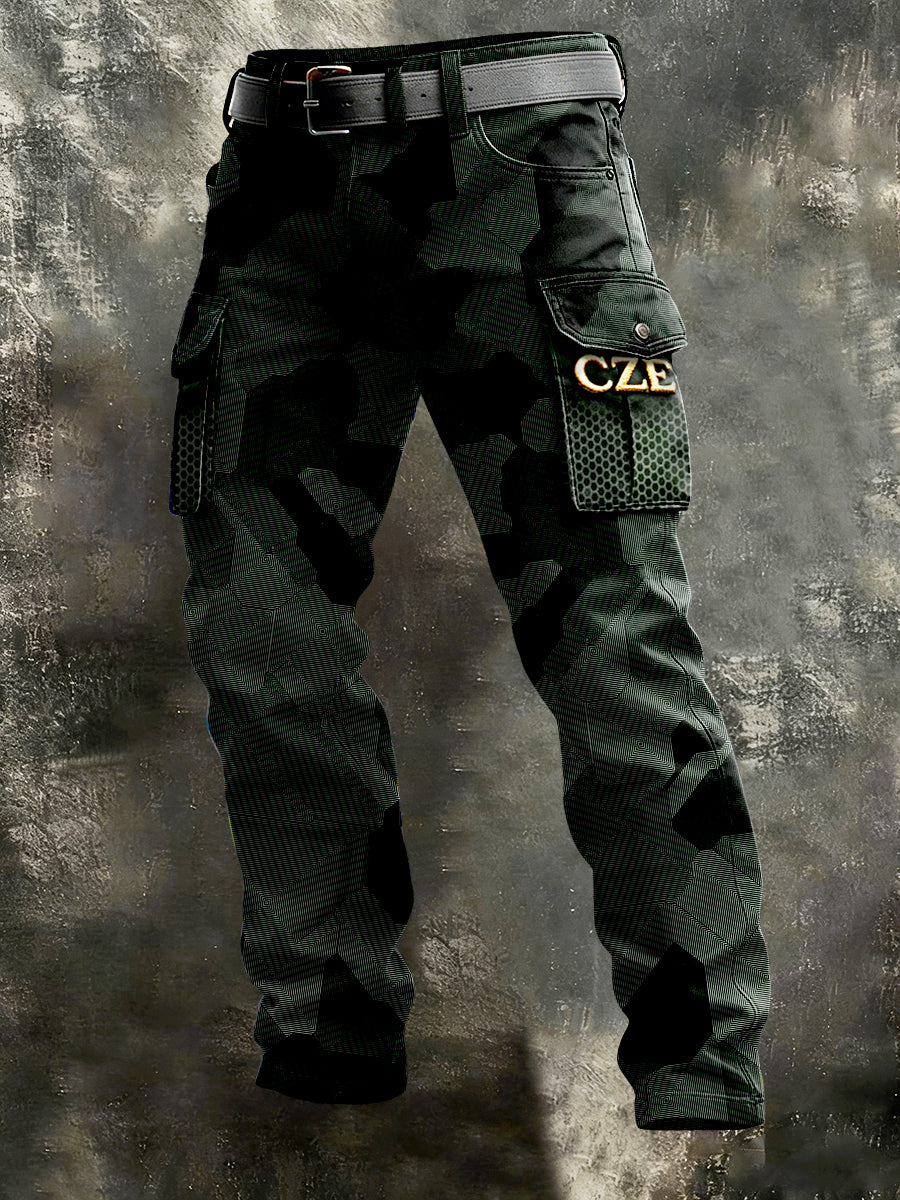 Męskie czeskie spodnie z nadrukiem tekstowym Ciemnozielone