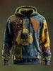 Vintage Patchwork Dog Print Art Casual Hoodie