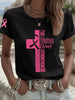Women's Breast Cancer Awareness Pink Ribbon Faith Cross Short Sleeve T-shirt