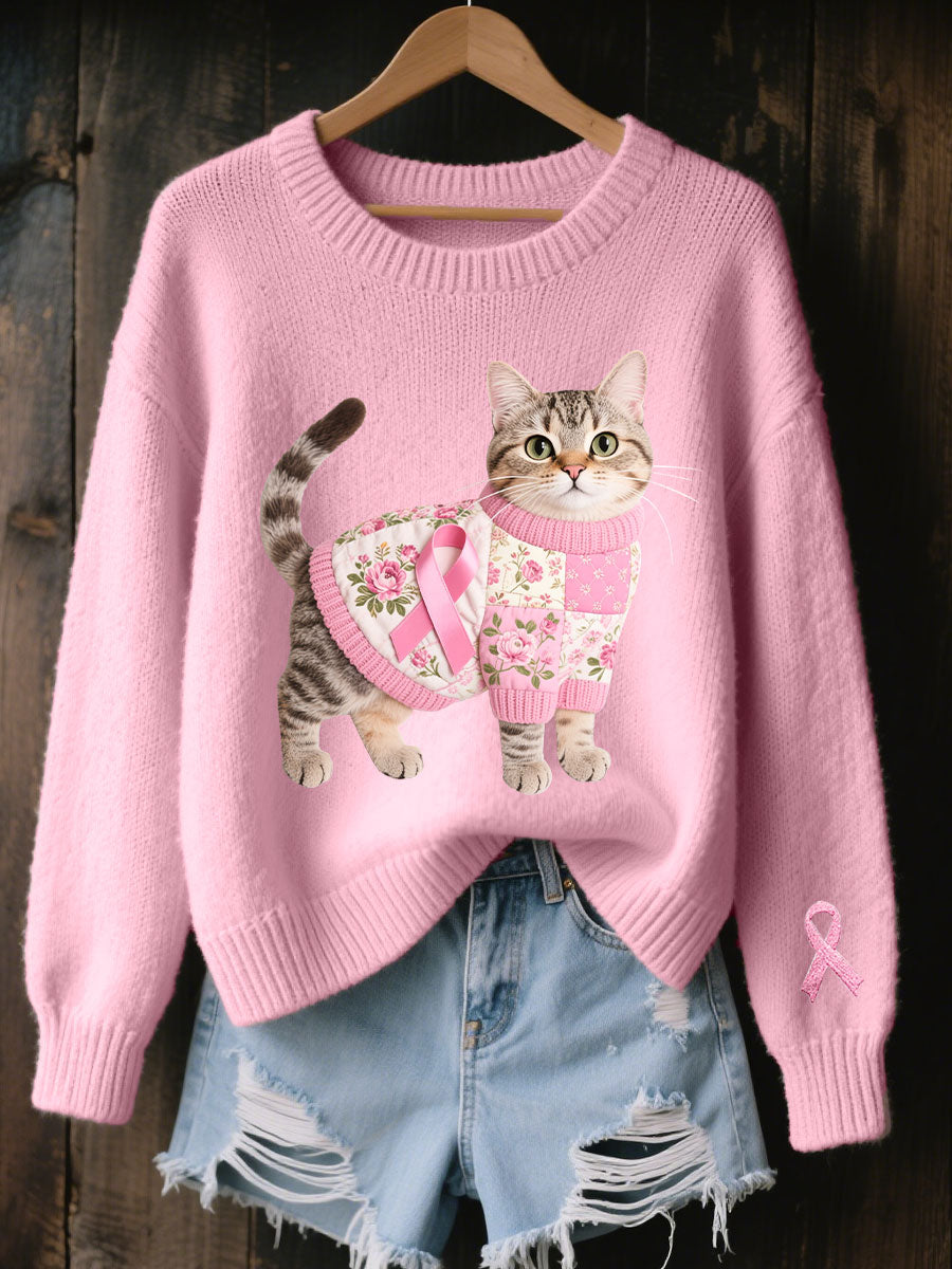 Women's Breast Cancer Awareness Pink Ribbon Print Casual Top