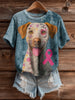 Women's Breast Cancer Patchwork Dog Art Cozy Knit Top