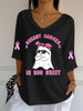 Women's Breast Cancer Pink Ribbon Ghost Print V-Neck Half-Sleeve T-Shirt