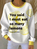 Women's Lemon Roses Music Lover Printed Ribbed Round-Neck Sweatshirt