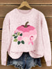 Women's Pink Floral Pumpkin Embroidered Knit Sweater
