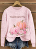 Women's Pink Floral Pumpkin Embroidered Knit Sweater