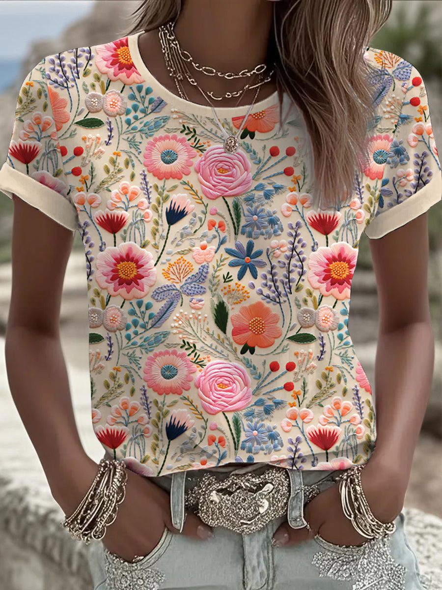 Women's Pink Floral short-sleeved T-shirt