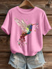 Women's Pink Hummingbird Print Show Casual T-shirt