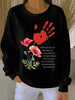 Women's Remembrance Day poppy print Ribbed Round-Neck Sweatshirt