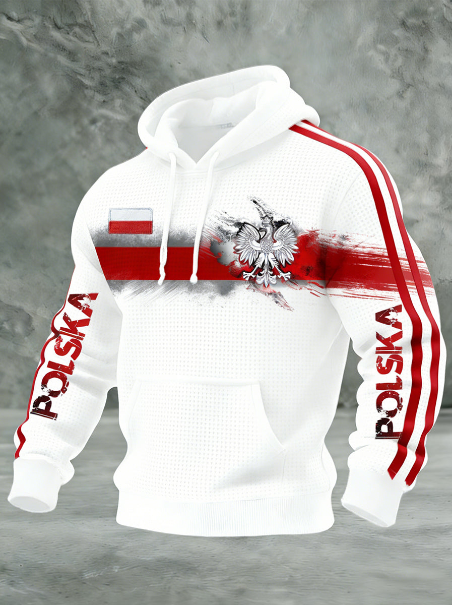 Wygodna bluza z kapturem w stylu retro z polską flagą na co dzień